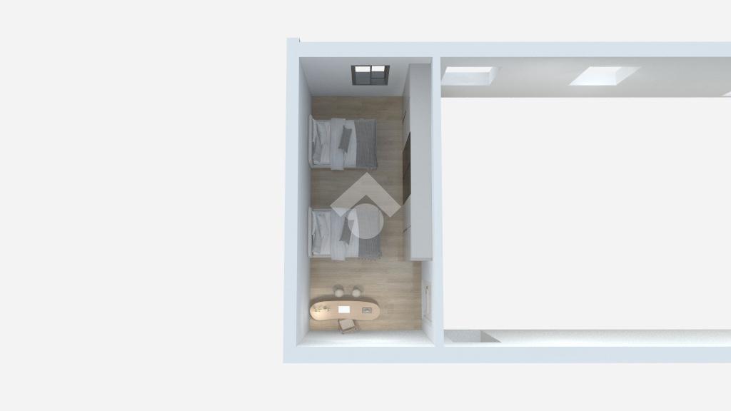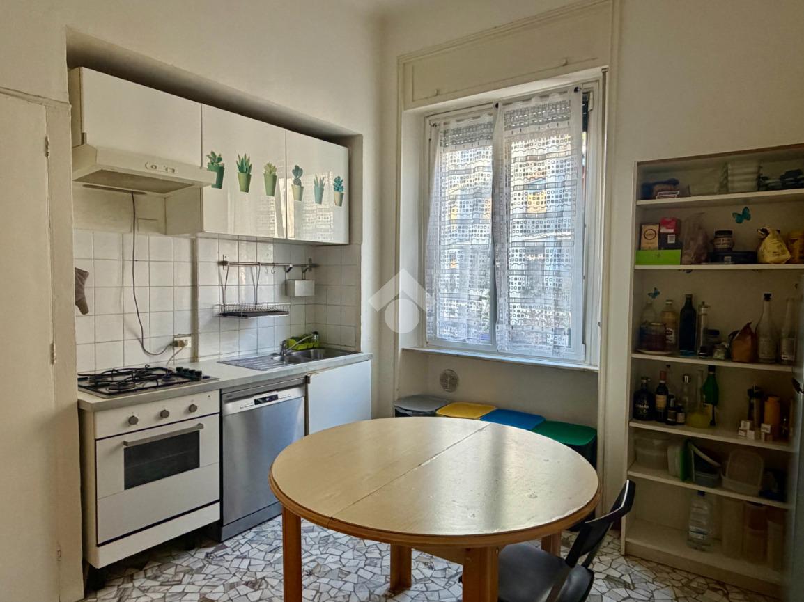 ingresso in disimpegno camera da letto , bagno finestrato , cucina abitale e camera matrimoniale adibita ad oggi come soggiorno, con la possibilità di trasformarla in seconda camera da letto con ampio balcone angolare.